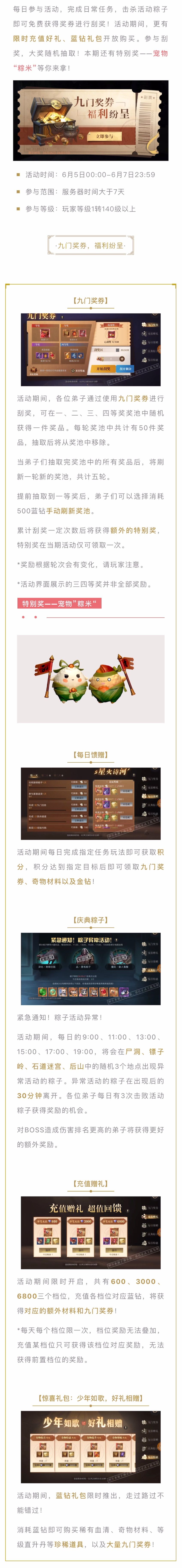 各位九门弟子,秀秀我今天带来一个好消息,弟子们期待的粽子宠物即将登场!参与明日开启的九门奖券活动即有机会获得!