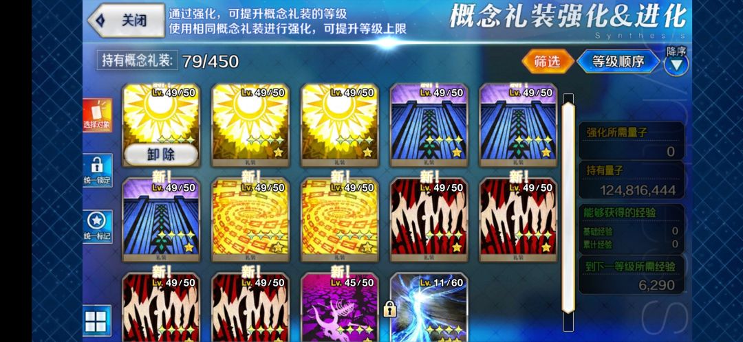 萌新感觉论坛搜到的都太复杂了,搓丸子单纯的就是为了省量子,没必要太复杂,只要记住强化星级和等级越低的礼装,耗费的量子越少。