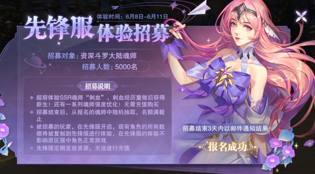 大家目前在游戏中都可以看到先锋服招募的信息,其中的核心体验玩法便是重做技能后的刺豚斗罗刺血的体验,而体验时间则是在6月8日-6月11日,因此从过往先锋服内容与正式服内容的更迭间隔来推测,刺豚斗罗很有可能会在6月20号之后便登录游戏,而且按照之前海龙斗罗在5月11日上线的时间进行推测,大概40天的间隔期也符合斗罗之前的传统。同时在2022年7月22日,游戏将迎来1周年庆的时间节点,在这个周年庆活动期间,用一位SP级别的魂师坐镇毫无疑问是最有代表性的,所以这也是为何官方之前会在直播中下一位SP魂师将于7月登录游戏,所以从周年庆的时间点来推测,下一位SP魂师登录游戏的时间应该就在7月下旬,所以我们也可以记一下这个时间点。