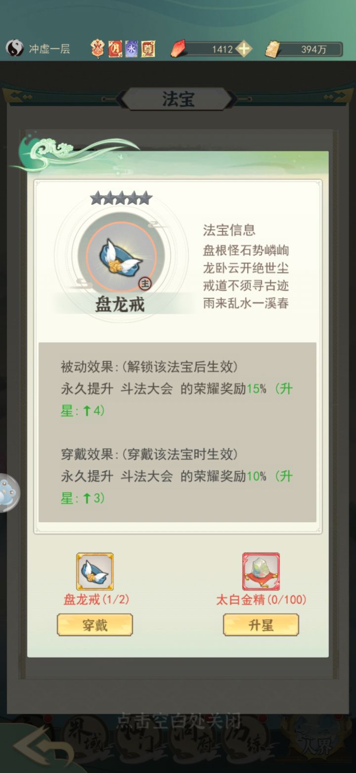 然后就是宿命的盘龙戒指加斗法荣耀加成