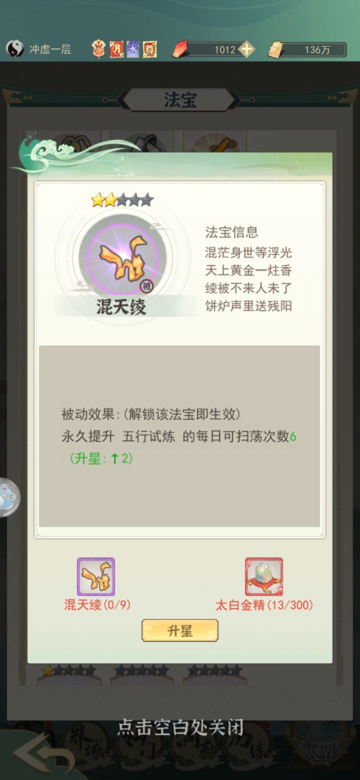 最后是太昊法宝混天绫,端午节活动最大获利者,可以加活动扫荡次数,全通过两次扫荡就是250套左右四象辉记,多么强大不必多说了。