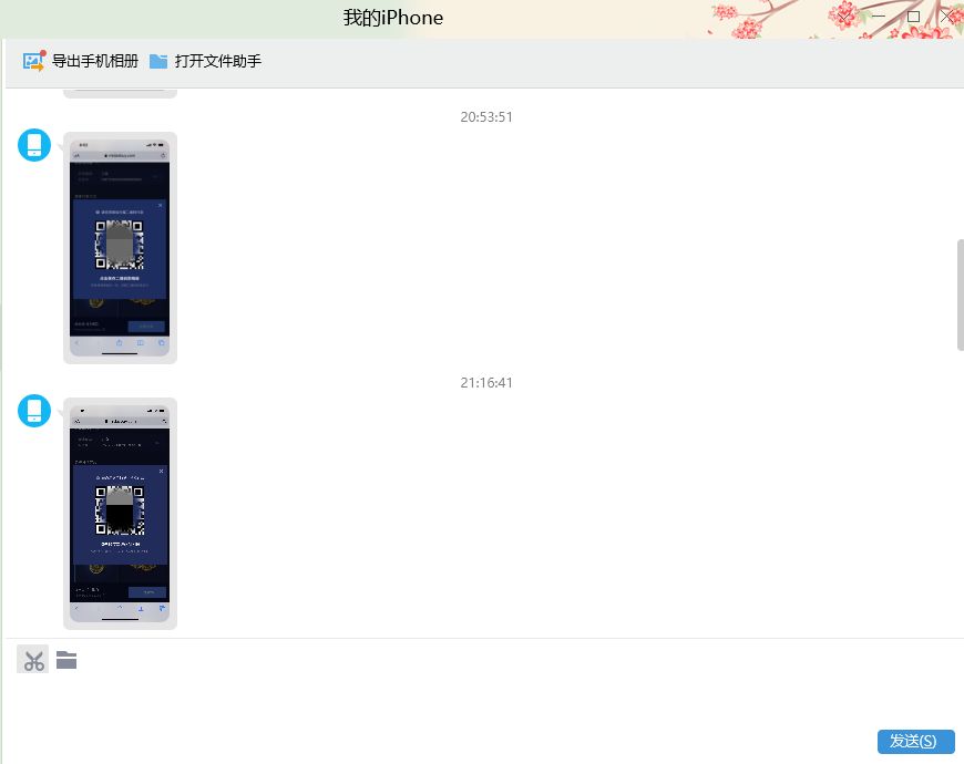 然后,再把带有二维码的整张截屏图片传到电脑端QQ、微信上。