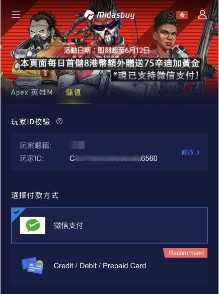 总体而言,《Apex手游》微信充值缺点是有些繁琐,但优点是安全无损,最重要的是,Midasbuy现在有平台返利活动,在6月12号之前每天充值最低档的8港币(6块多一点),能获得90+额外75=165黄金,活动持续11天,每天都能充8港币领一笔返利,最多能领1815辛迪加黄金!而且这部分充值还算累计充值,能领取对应的奖励。算下来远比直充划算得多!