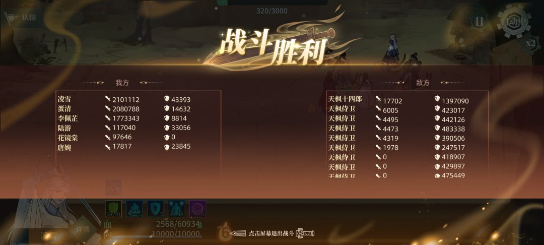 3.天枫次郎 上主角、凌雪、唐婉、陆游、李佩芷、和尚。注意躲开刀刃,对伤害有自信的可以开自动击杀