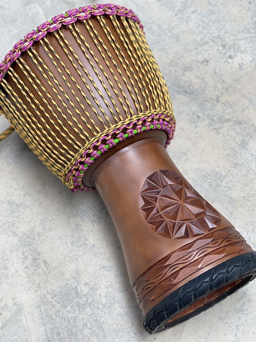 采用桃花心木,整木掏空,鼓身完美无暇!