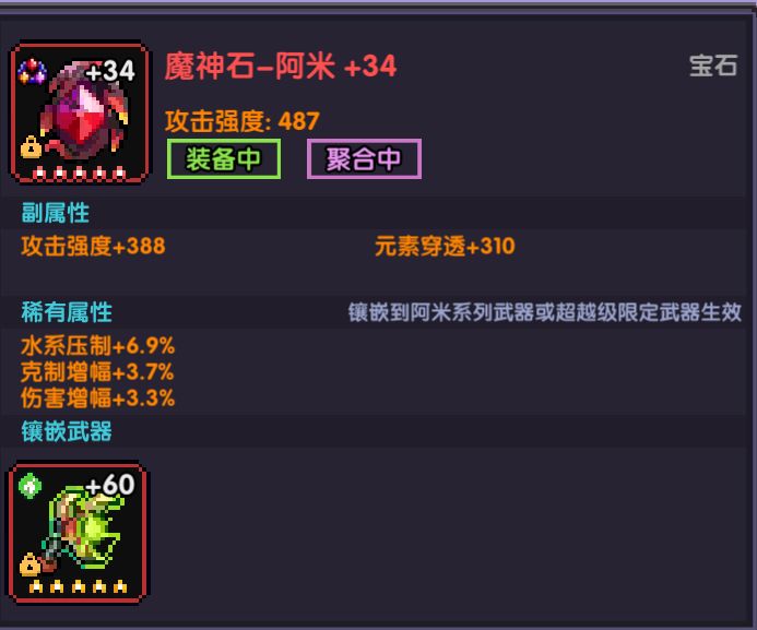 克制增幅:打被克制的怪物时伤害增加,目前只有烈焰牛魔魂卡和宝石能获得这个属性,稀释很低