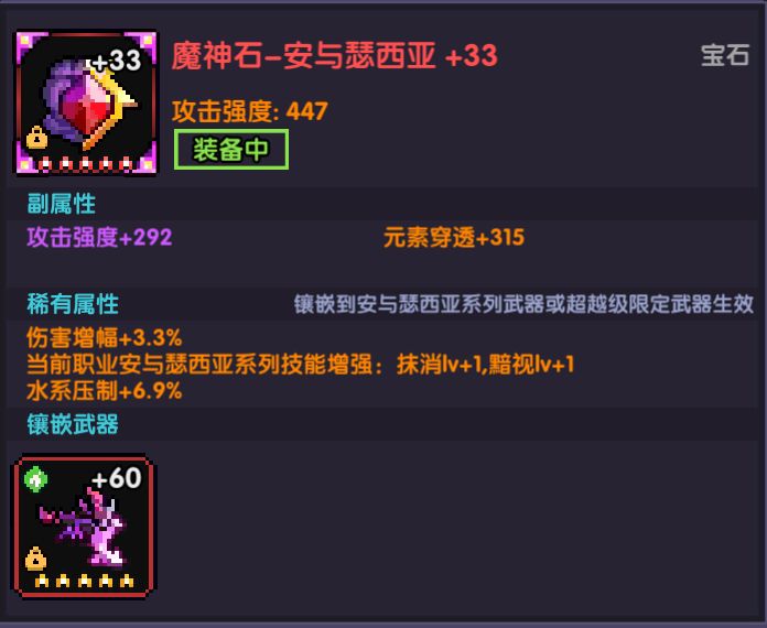 最好还是有6个3系的伤害增幅+克制增幅+属性压制红宝石,这样只要有魔女宝石的情况下,就能有较好的强度
