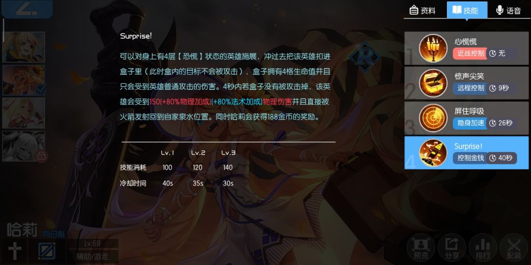 如果4秒内盒子没有被打散,就把盒子里的英雄送回泉水同时造成物理伤害(注意!大招只有到了这里才会有伤害),哈莉获得188金币