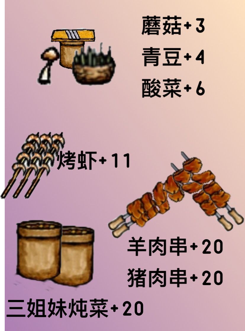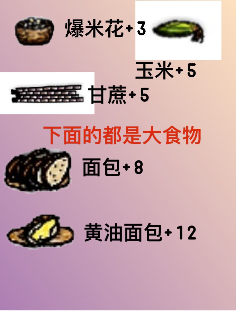 啊哈,我把我叠食食谱转换成图片模式感觉理解程度也没变高上面为固定食物下面为大食物