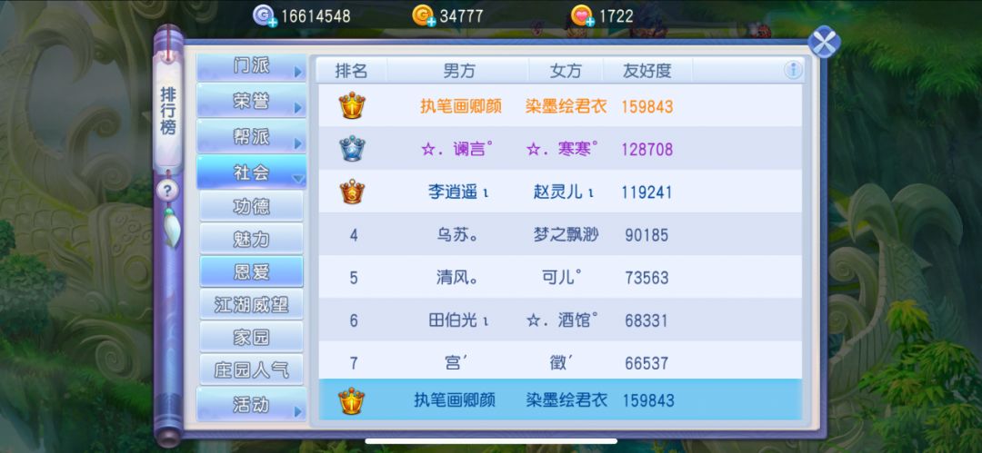 染墨绘君衣:我们现实是认识的,但是现实没有谈及感情的事情,只是关系比较好,有一天他让我陪他玩桃花,因为平时工作也很闲的缘故就答应了。因为我之前玩过端游,所以对手游也不算太陌生,他当时是有固定队的,但是整天带着我一条和各种任务,起初我不太好意思去,毕竟他有固定队,占了人家位置不好,但是我不去他就退队跟我跑图片突然有一天,他说他喜欢我,要和我游戏结婚,我一开始是不太相信的,因为那么久他都没说过,就这样一直持续了一段时间,最后还是被说服了,本来挑好日子2.14情人节结婚的,但是当时赶上更新情人节任务,婚礼就提前了。