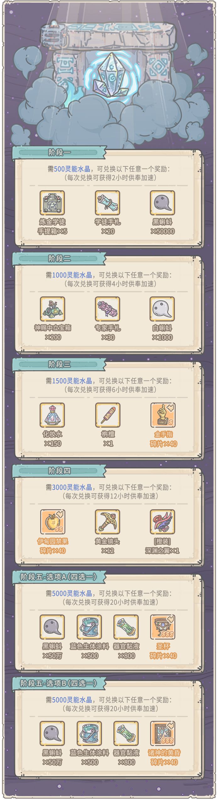 活动期间,消耗供奉加速(小时),可获得以下奖励: