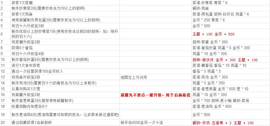 以下攻略不是唯一解,也不是最优解,我找的都不是活动池里的厨师和菜谱,可能抽过活动池后有更方便快速的过任务方法,希望大家能以此为参考,结合自己的厨师菜谱高效度过新手期~