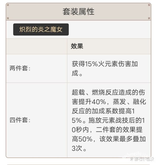 四魔女套能够提供火元素伤害加成以及火属性反应加成,是最基础的火伤c位套装。