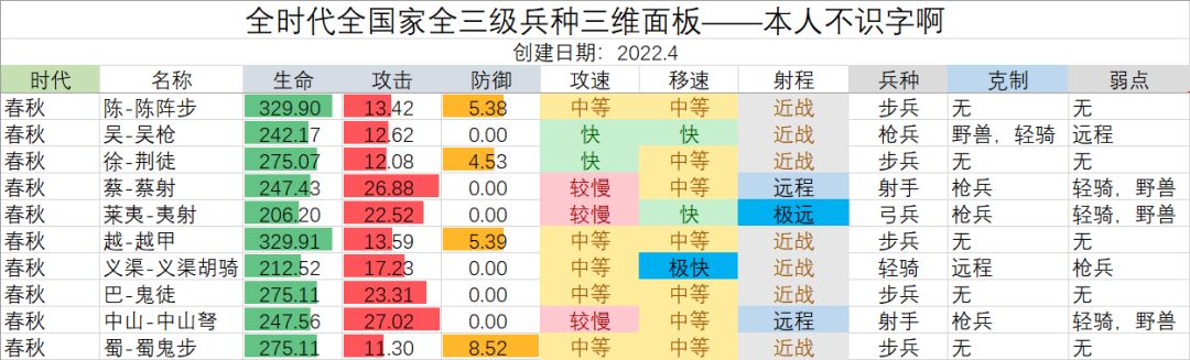 发布2天后才发现自己3级兵数据表格图片没上传全。不知道当初制作的时候系统怎么吃掉了。现在已经补上了。