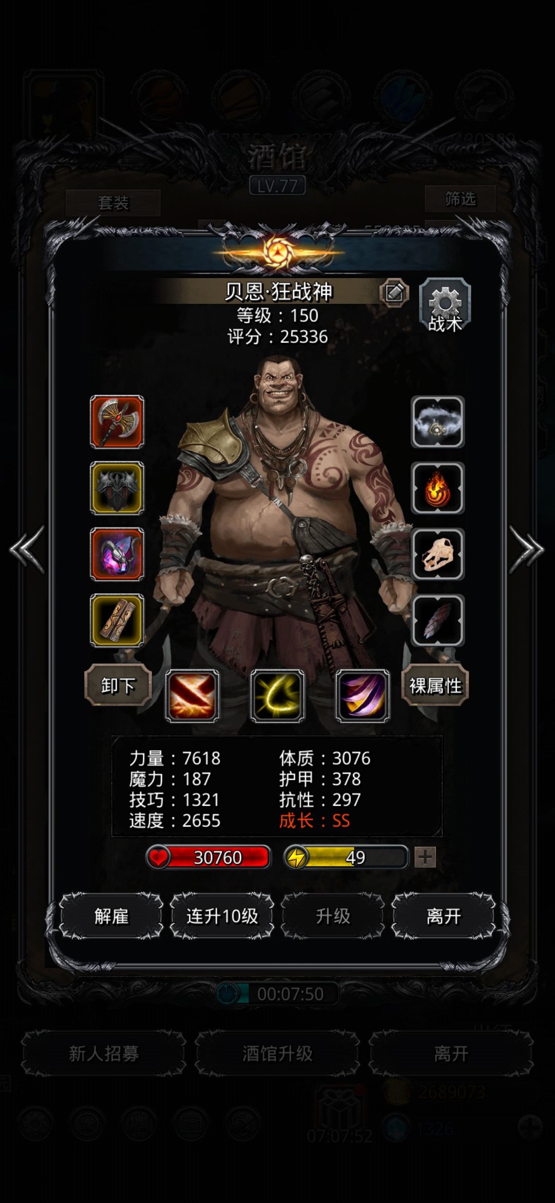 图27BOSS二阶段,对于那些伤害差50w左右的可以试着手操魂闲,手动上毒,然后再切自动,如果看到自己血量不健康就开回血,再切自动,我原本差70w伤害的,手操之后提前几秒过了,魂闲环50级,独裁环29级,另外两个9级