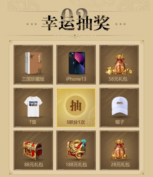 在现金红包至于,通过完成参与本次活动,还能获取抽奖积分,不仅有游戏礼包、精装版《三国演义》、官方周边,还有iPhone等你来拿。