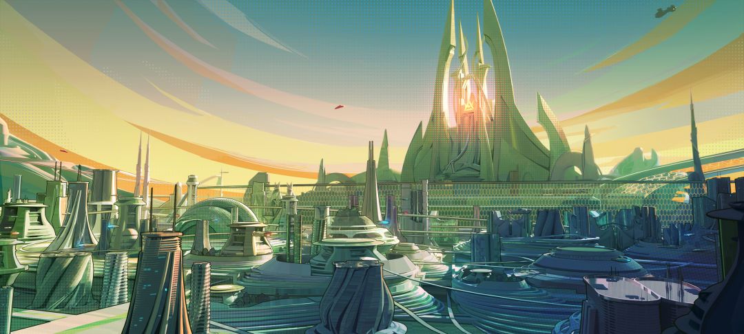 钢铁巨城【海克撒冷】。【海克撒冷】都市是一座半悬浮在空中的科技巨城,分为上中下三大城区,上城区是一个仿生人到处可见的高科技城区,也是科伦巴议会的生活区;中城区又名“霓虹之城”,是各类企业本部的所在地;下城区又名“喧嚣之城”,是犯罪的温床。科伦巴议会是都市的独裁者,掌控着都市的一切,自称新人类,要隔绝旧时代一切的信息,要实行新世纪飞行计划,让上城区飞离地球。