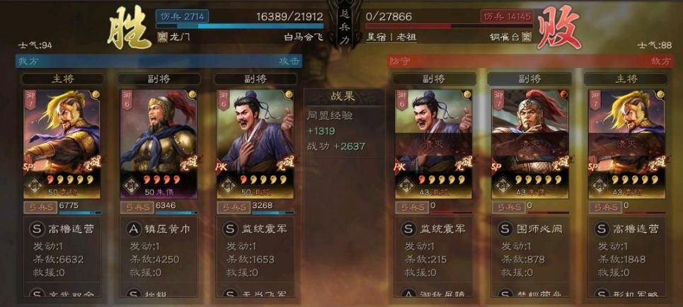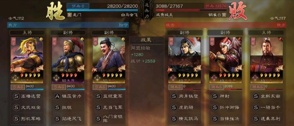 0战损打穿孙权吴骑,相当的舒服,战功2559到手!