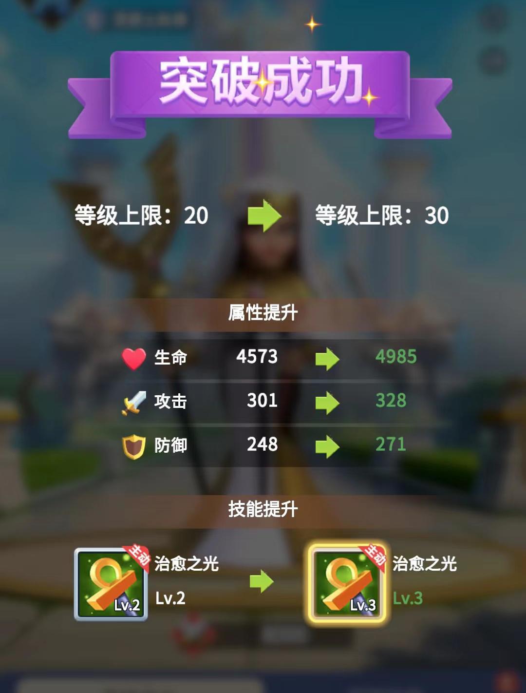策划小鹏:与三消战斗有关的,是英雄的属性和主动技能,这两者的可通过升级突破、升阶进行提升。SS英雄前期碎片获取相对较难,领主们可以先把重心放在升级突破上。