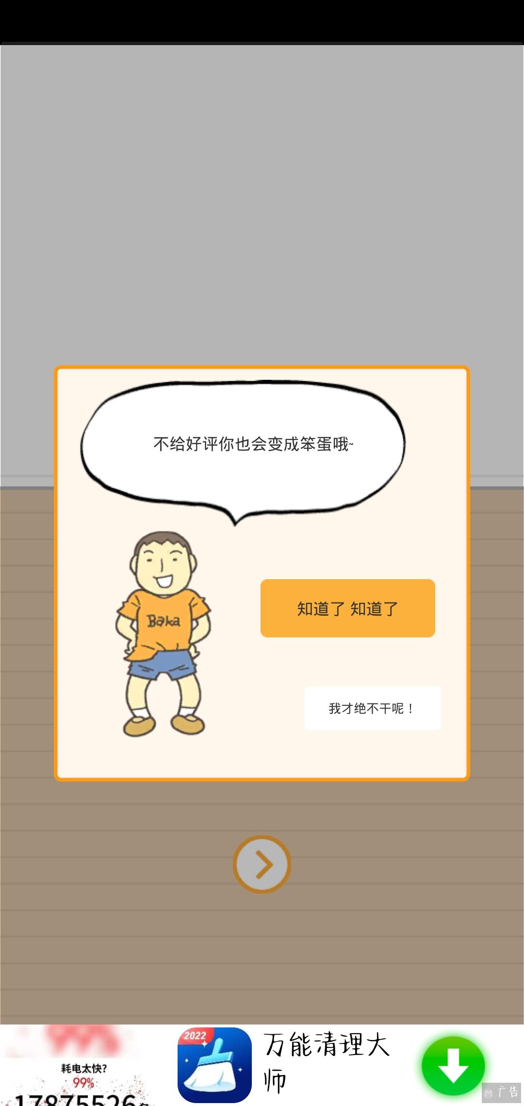 哈哈哈哈哈最后一张图前面就出现过了,而且你点去好评的话就是跳转浏览器,而想继续玩的话好像只能点那个小小的框ovo