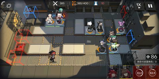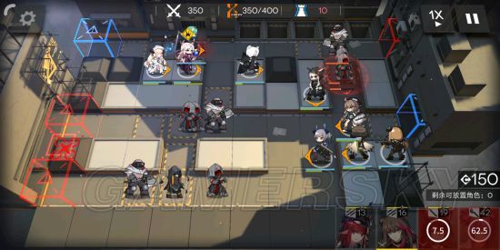 此图难点:上面那条线会出高物抗的重装怪,因为只有一T的资源必须尽快清掉,所以把法伤最高的干员放上去,若有群奶则把群奶放到左上角,不然最后几波会翻车,300怪后需要变阵,这样挖矿到300就行,前面没什么难度。