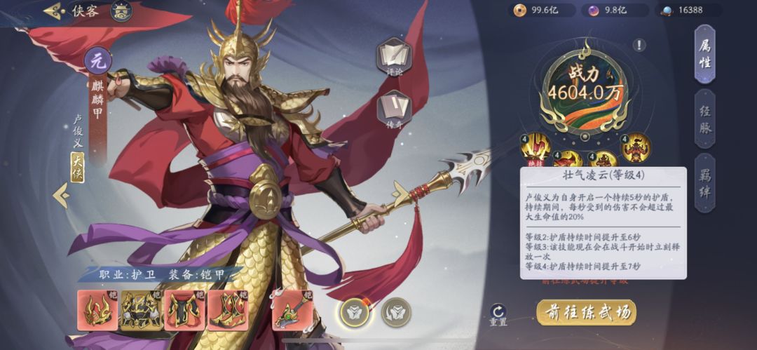 红一卢俊义,没有给经脉和秘籍,普通红色装备,练武场等级必须给。