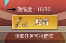 每次射箭增加1点熟练度,熟练度满解锁百发百中射箭。