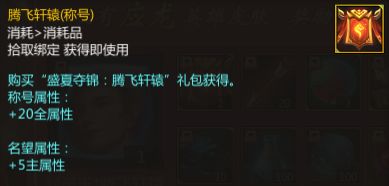 与此同时,还能获得一个换装同名称号—腾飞轩辕,能够为大家带来不错的属性加成哦~