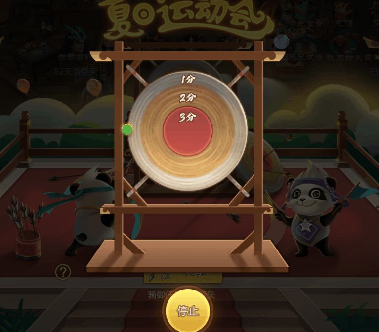 游戏开始后,在准心移动到箭靶位置点击射箭,即可得分。箭靶有三个得分区,其中靶心为3分,内圈2分,外圈1分,得分满后可领取奖励。