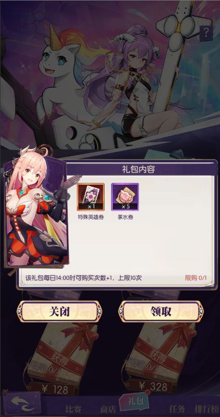 通过活动任务和每日礼包可以获得「茶水券」,「茶水券」用于在礼物商店中兑换赠送英雄的礼物。