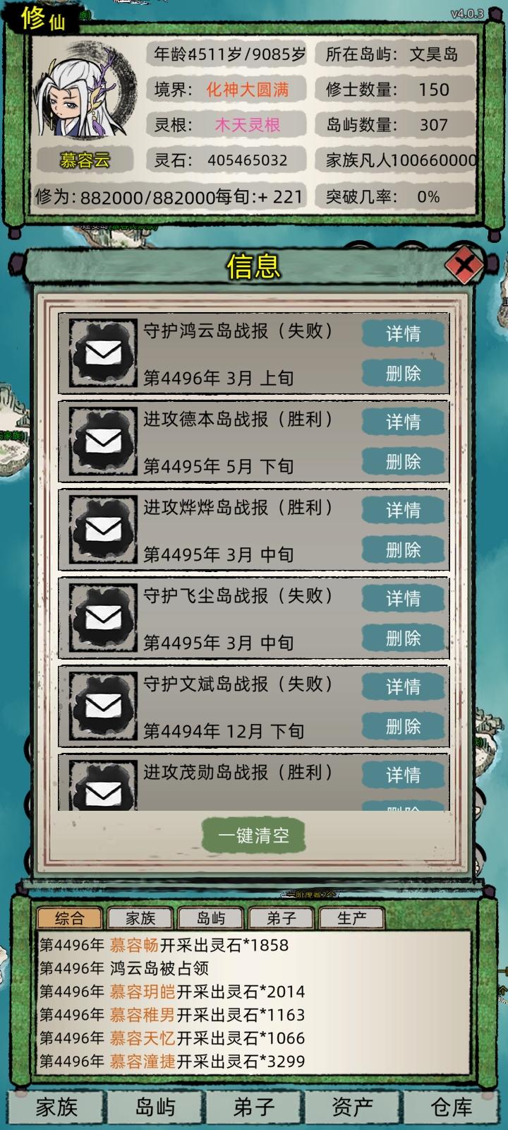 可是好景不长,海兽族中有人发现了无上秘境,接连出现了好几位化神,以及多位神子,它们的实力经过扩大之后又卷土重来,势必覆灭人族。在这危急时刻,各大宗门世家齐聚一堂,决定联合对付海兽族,在慕容氏家族的带领下,人们踊跃参军。组建了以百位化神强者在内的虎狼之师。其中,慕容家族更是化神尽出,共有46位化神强者参与其中。