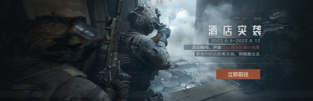 【活动说明】活动期间,北山酒店半图限时开放,无需入场券,参与活动的先锋将直接出生在北山酒店内,直面更激烈的近距离交战,快速搜索物资,突围赢出去!