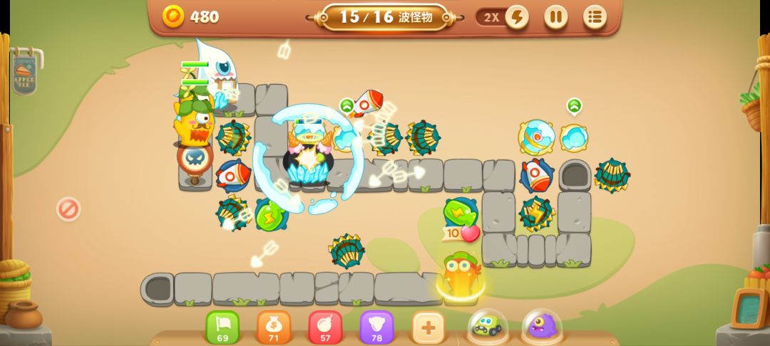 减速瓶子升级一个就行了,够用,左边放个弓箭开这里隐藏的减速瓶子,同样只升级一个就够用了。