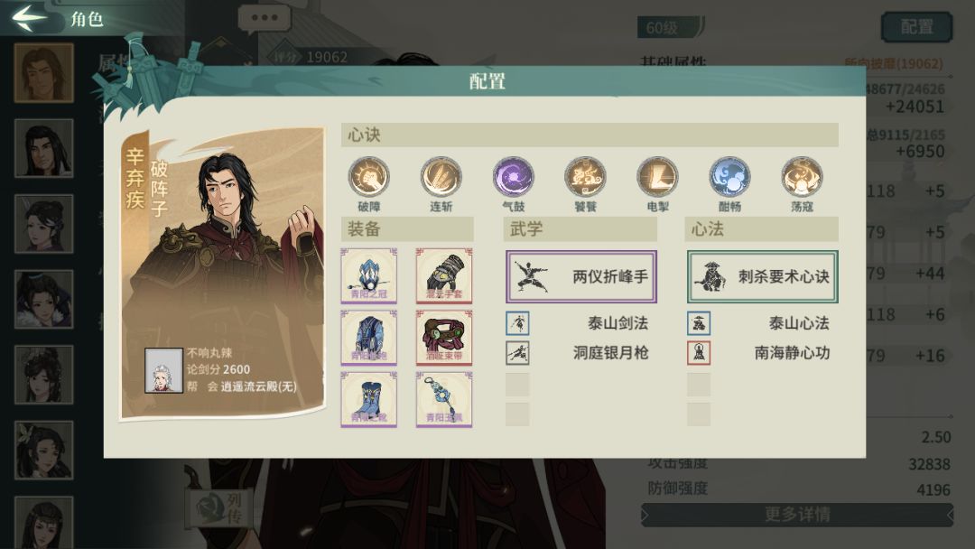 侠客配置和55版本略有不同