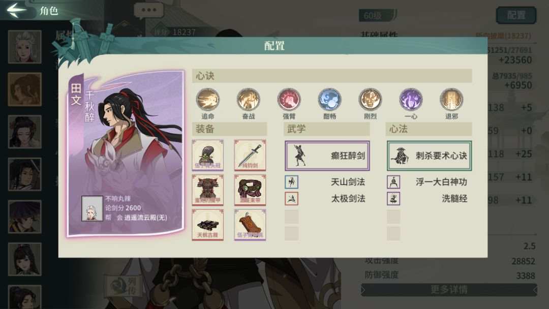 田文:给纯钧剑可以多一个刚烈的伤害加成,由于有退邪,所以太极剑法可以换成其他的增伤武学
