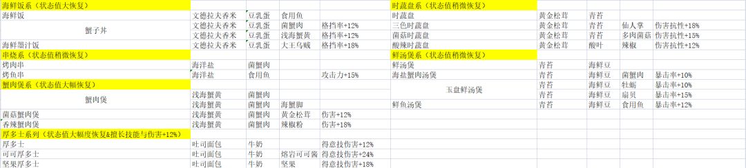 写在前面,探索料理配方是一个很有趣的过程,料理帖会降低游戏趣味性,慎重观看。