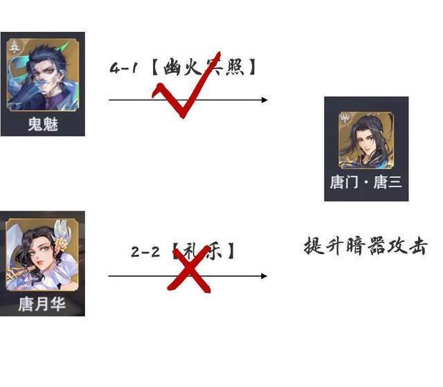 所以就暗器攻击来说,它能享受到的增伤其实具有一定局限性,因为所有的按照辅助增伤魂师攻击力为基础的增伤技能它都吃不到,例如我们上一个唐月华,那么暗器魂师就吃不到2-2的【甄】加攻效果,只能吃到3-2【碎玉】的受伤提升和4-1【惊弦】的暴伤提升效果,而唐月华的2-2技能中的【甄】加攻效果其实才是唐月华增伤的核心,所以维一在这里特别申明这点就是为了告诉大家,暗器攻击在吃增伤方面并不具备太大的优势,所以当大家的唐月华、波赛西、绛珠等魂师的练度很高时,暗器攻击就会显得比较吃亏了,相反祝福流派则可以充分的吃到这些魂师的全部增伤效果,这也是为什么很多朋友都在说祝福流的上线要比暗器流更高的最大原因。