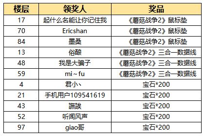 以下为获得《蘑菇战争2》鼠标垫、三合一数据线的钻石的首领们~
