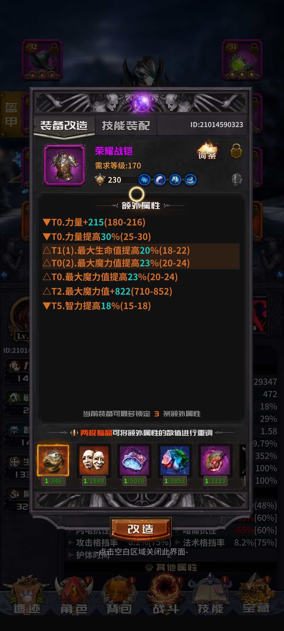 候选词条:法术爆伤提高,攻击和法术爆伤提高。