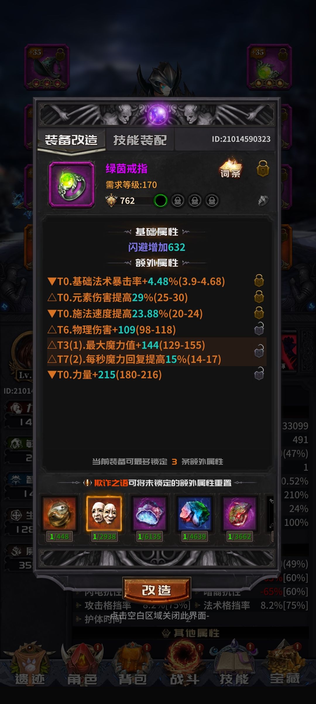 戒指:核心词缀:基础法术暴击率提高,施法速度提高,力量提高。