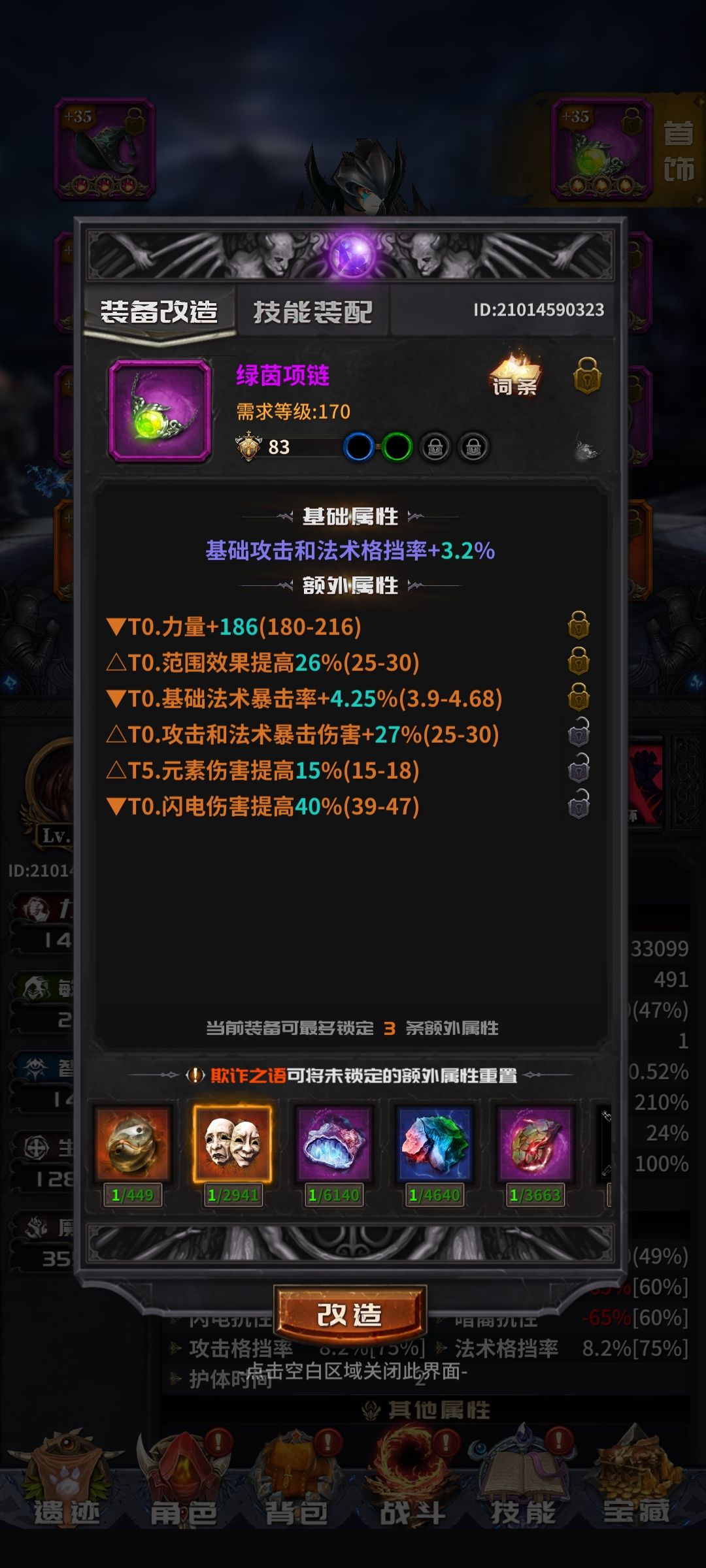 项链:核心词缀:基础法术暴击率提高,范围效果提高,力量提高。