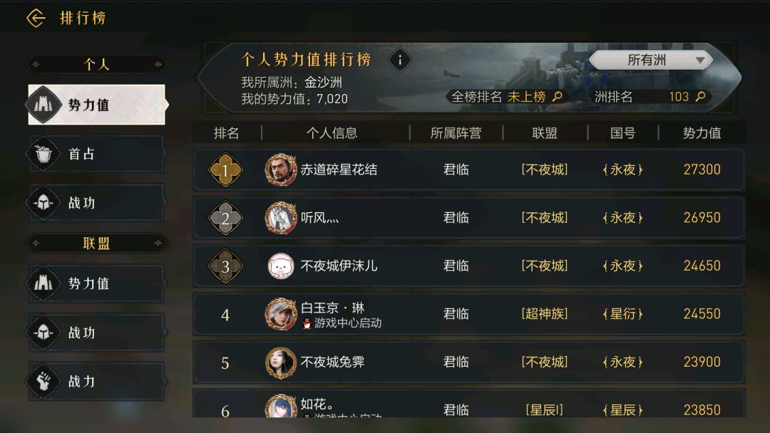 【重返帝国】QQ3区:s1赛季总结之个人赛季排行榜