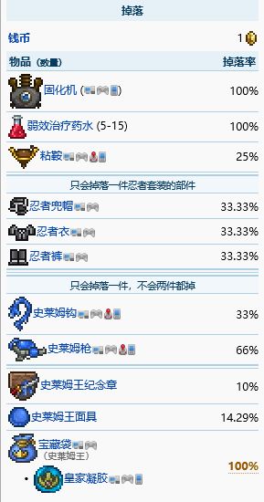 满足以下条件时,史莱姆王有极低几率自然生成:①玩家位于地图外侧的两个六分之一(最左边或最右边)范围内。②深度高于零。③当时是白天。④在其潜在的生成点必须有标准的绿草