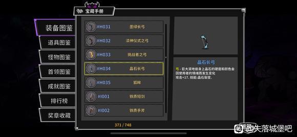 击败奖励黄金大宝箱+晶石系列装备 附一张弓图