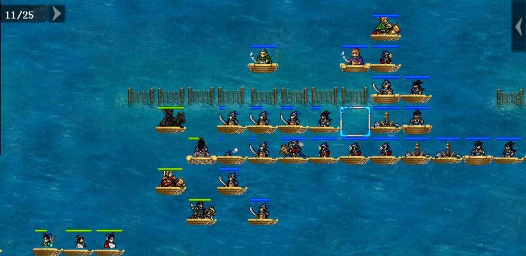 本关主要是难在第四回合,周瑜给全军+buff(吐槽:加就算了,还+移动),我军有debuff,这时候不要贪心输出,赶紧上buff优先防御,避免卡位人物死亡,至少撑上个两三回合。