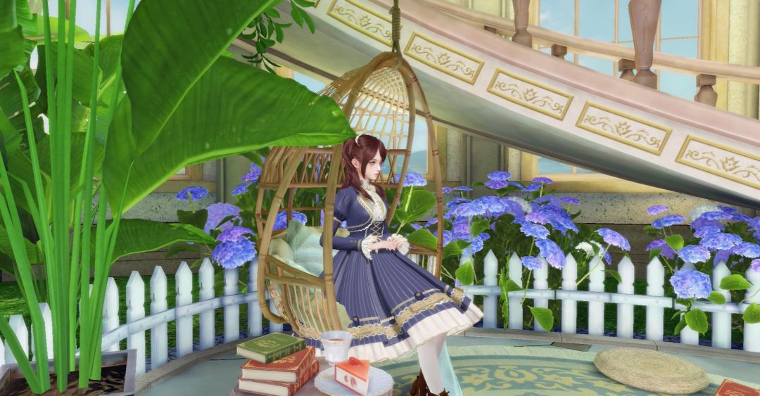自由度很高,包括和好友合影,场景内自由移动,有互动,花房喷泉可以许愿,椅子可以坐,还可切换横竖屏,