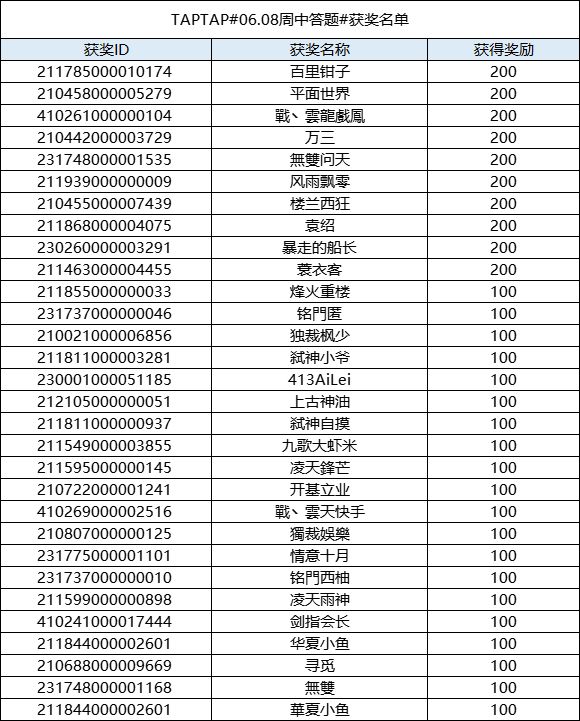 1.活动结束后7个工作日内公布名单。公布获奖名单后,并于7个工作日内根据各位玩家在活动中所留下的游戏ID完成奖励发放;