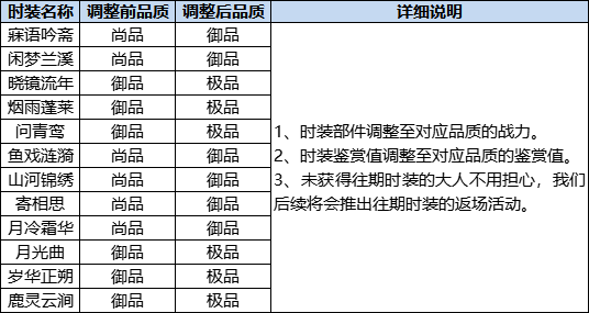 5、时装品质全面升级,时装战力以鉴赏值均提升;(6月9日版本更新后将发送差额鉴赏值)