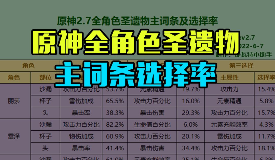 原神全角色圣遗物词条使用率排名,你的圣遗物带对了吗?