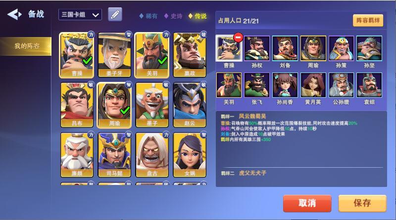 游戏主界面中拥有备战卡组功能,英雄属性、羁绊效果、整容搭配一目了然。如何利用最少的英雄数量搭配出最多的羁绊效果,哪些阵容适合低养成成本快速开局,都可以在备战卡组中进行快速、灵活的组合搭配。组合搭配好后在副本中游戏时,系统便会对卡组中的英雄进行标记提示。这样就不用了担心在高压波次时,因为考虑卡组而贻误战机了。